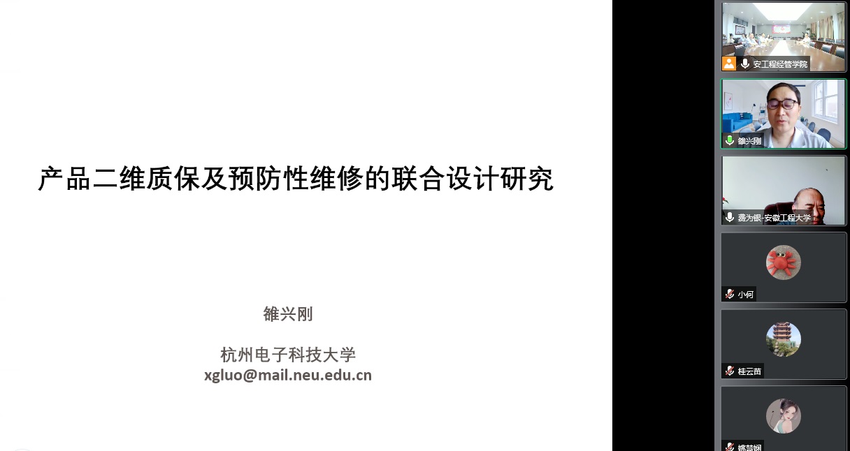 报告会上,雒兴刚作题为《产品二维质保及预防性维修的联合设计研究》的学术报告。他从汽车行业二维质保对市场竞争影响的案例出发,详细分析了二维质保和预防性维修的联合设计优化模型和算法,通过数值实验,说明了在充分考虑制造商和顾客学习效应的影响下,确定最优的预防性维修次数,为制造商设计合理的质保策略提供理论支撑,实现制造商销售利润的最大化,实现制造商和消费者双赢。