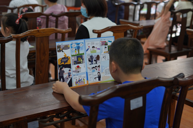 此次活动由法治宣传实践小分队与旭日天都社区“希望之光”志愿服务团队共同开展,延续了团队一贯的“普法宣讲+文创产品”的特色宣讲模式,活动开始过程中将统一印制、自主创作的主题宣传漫画发放给在场的家长、儿童。法学201孙健同学进行“安全伴我行”主题宣讲,从“我不和你走”“游泳小贴士”“小心电刺猬”“预防病毒”四个主题出发,生动形象地向在场儿童传播安全保护知识,提髙了留守儿童自爱自强和自我保护能力。宣讲结束后小分队成员与小朋友们共读宣传漫画、共做防疫手工,其间欢声笑语不断。