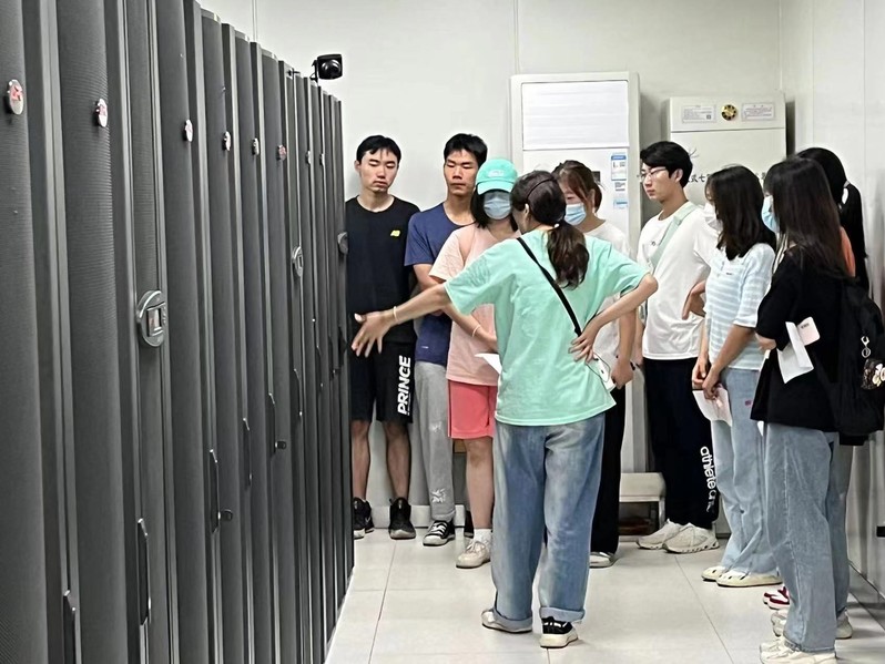 本网讯 6月13日上午,计算机与信息学院组织21级学生,包括计算机科学与技术、软件工程、物联网工程、数据科学与大数据技术专业共300余人,在学院教师和现代技术中心网络管理员带领下,在学校数据中心机房开展专业认知实习。
