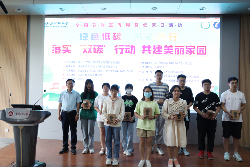 6月14日下午,由后勤党总支和化环学院党委共同主办、校环保协会承办的“基于‘双碳’背景下水处理技术的研究”主题宣讲活动在全校范围内展开。主办双方单位主要负责人及相关专业老师参与活动,活动由化环学院张晓颖老师主讲。张晓颖从“双碳”的背景、废水处理领域的碳排放、到废水处理实现“双碳”技术路径三个方面全面阐释了中国在实现“双碳时代”高质量发展过程中所面临的挑战,“双碳时代”高质量发展需要我们贡献更多的智慧和力量。活动现场,来自各个学院的老师与同学们积极互动,活动现场精彩纷呈,现场发放绿丝带、展报签名、颁发礼品等环节更是将活动的氛围推向高潮,也充分展现了学校师生对建设绿色校园的美好向往和坚定决心。