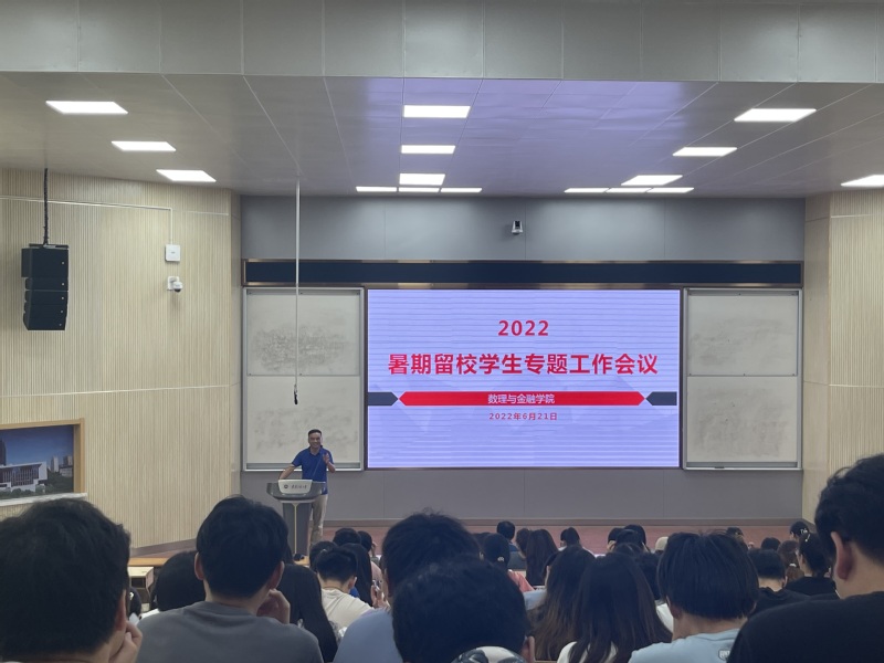 本网讯 为切实加强暑期留校学生安全教育和管理工作,进一步增强留校学生安全意识。6月21日,数理与金融学院在2教报告厅召开了2022年暑假留校学生专题工作会议。学院党委书记周毅仁、党委副书记何志恒、副院长吴小太,学院团委书记、19级辅导员、研究生秘书及辅导员和全体留校本科生、研究生参加会议。