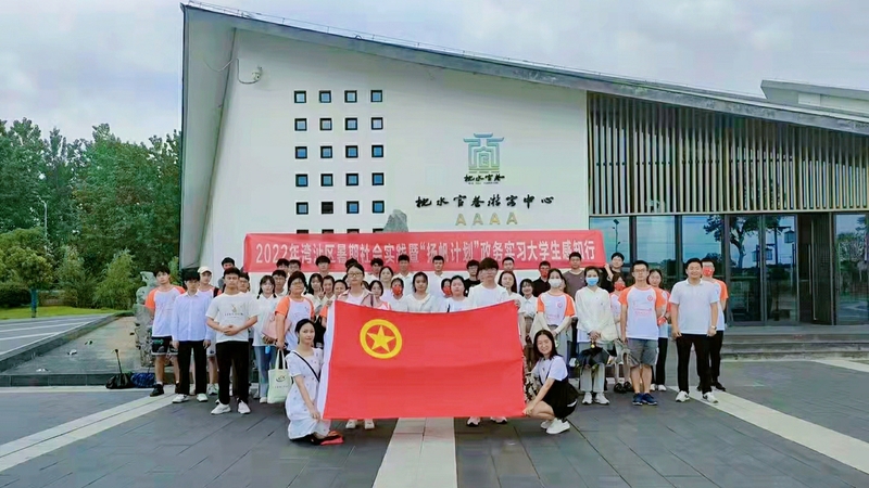 本网讯 6月28日,生物与食品工程学院党委副书记王辉、团委负责人杨良军以及学校新农村文旅调研服务队受湾沚区团委邀请,赴湾沚区参加湾沚区大学生暑期社会实践暨“扬帆计划”政务实习启动仪式。并于当日携手来自安徽师范大学、安徽职业技术学院的三支社会实践团队前往航空小镇、龙尾张村、湾沚区红色印记馆、小陶村、殷港艺创小镇、官巷六地联合开展暑期“三下乡”社会实践活动。