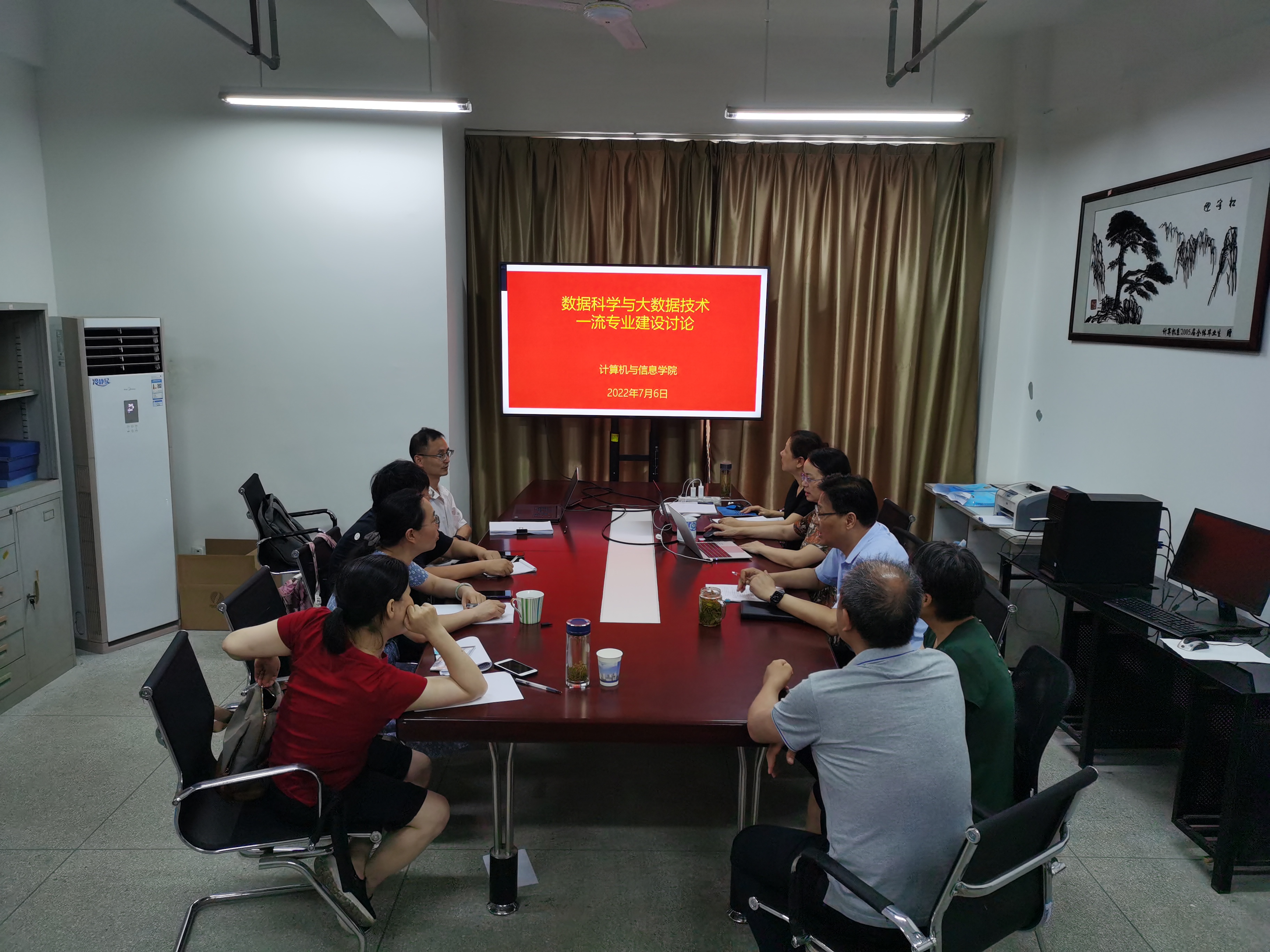 本网讯 根据教育部《关于公布2021年度国家级和省级一流本科专业建设点名单的通知》,我校数据科学与大数据技术专业获批省级一流专业建设点。7月6日,计算机与信息学院数据科学与大数据技术专业召开一流专业建设讨论会,会议由数据科学与工程系主任陶皖教授主持,院长汪军、副院长刘涛、专业教师以线下、线上相结合的方式参加会议。