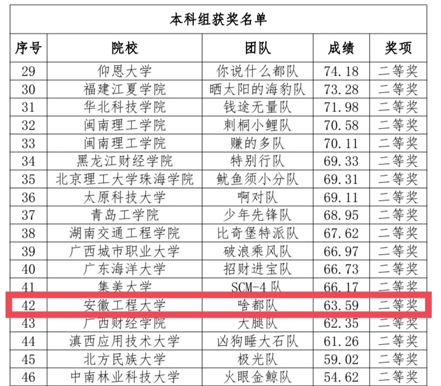 本次大赛自5月份开始,初期共有来自29个省市自治区的249所院校报名,经审核确定本科组共498支参赛队取得初赛资格。经过全国的初赛、复赛,最终有60支队伍进入全国总决赛。总决赛现场共评出本科组一等奖24名、二等奖36名,三等奖92名。