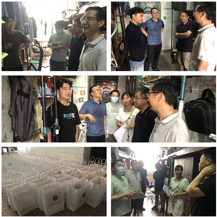 走访期间,学院负责人表达了对留校参加科研、学科竞赛、复习考研学生的亲切慰问,叮嘱同学们要科学制定计划,认真复习备考,充分利用好暑假复习的黄金时间,真正做到学有所获,全身心投入备考、备赛。学院负责人要求,留校学生要严格遵守芜湖市及学校新冠肺炎疫情防控工作要求,坚持“非必要不离校”“非必要不离芜”,严格履行请假审批手续,按要求做好核酸检测,坚持不间断打卡,落实“日报告”“零报告”制度;要注意学生宿舍安全和安全稳定工作,保持信息畅通,及时向学院反映意见和建议。老师们为同学们送上了精美的爱心大礼包,鼓励他们做好个人防护,注意个人卫生,保持宿舍整洁卫生,勤通风透气,积极配合属地和学校的疫情防控工作。