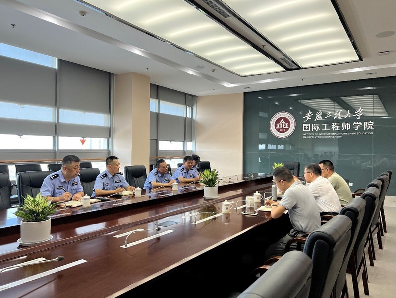 本网讯 为进一步推进校警联动,维护高校安全稳定工作实效,8月2日上午,芜湖市经济技术开发区公安分局政委秦锋一行5人来国际工程师学院校区考察指导校园安全工作。国际工程师学院校区管委会常务副主任、配建办主任魏长顺、管委会综合办公室和保卫科负责人陪同考察。