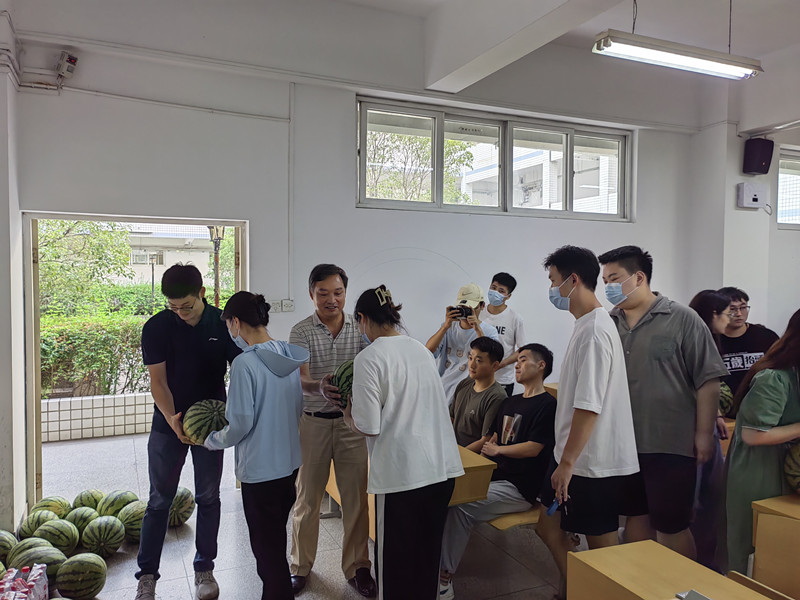 会后,学院老师给每位同学分发了矿泉水和西瓜,为留校奋力拼搏的同学们送上一丝夏日清凉。同学们表示,留校期间,继续做好自我管理,努力学习,争取给学院交上一份像西瓜一样“沉甸甸”的成绩单。