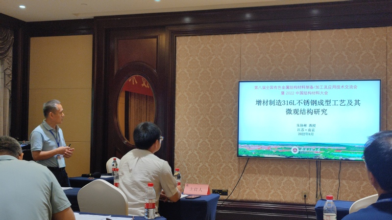 会议期间,在第三届结构材料学院(所)长论坛上,朱协彬代表学校介绍了材料科学与工程学院学科专业与应用情况,并应邀在增材制造技术分会场做题为“增材制造316L不锈钢微结构机制及其工艺优化研究”的专题报告。