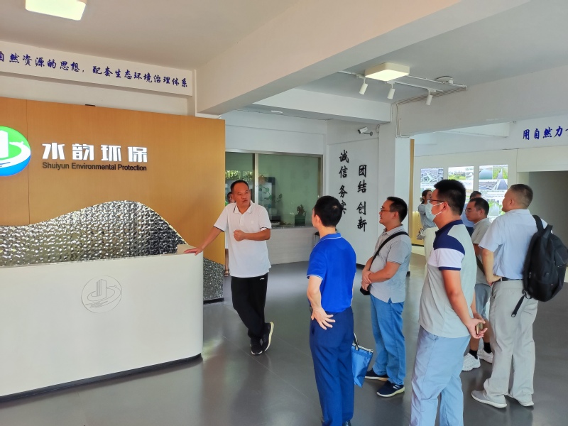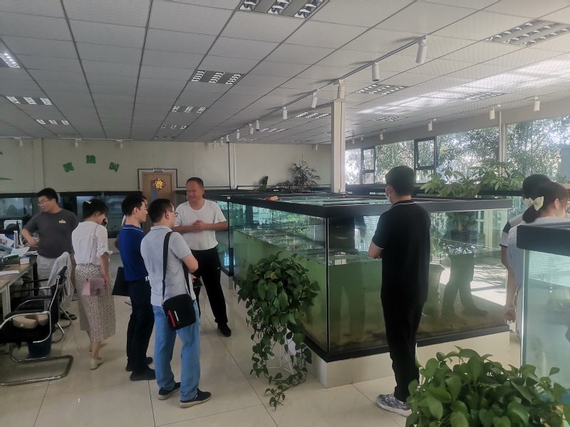 交流会前在江跃进董事长带领下徐大勇一行还参观了“农业农村部芜湖长江软体动物保护基地”、淡水贝类科研繁育试验基地和水韵环保的研发和检测中心。水韵环保公司修复水生态的一大特色是运用“贝、鱼、菌、草”生态净化系统,达到“用自然的力量治污”的效果。