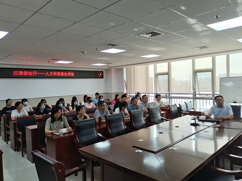 本网讯 为认真落实安徽省教育厅关于开展“江淮普法行”活动通知精神,推进法治安徽建设,加强校园普法工作。9月7日下午,人文学院举办了题为“习近平法治思想的基本内涵及其重要意义”的普法讲座。校党委宣传部副部长李红星,法学系专业教师、法学专业21级学生等参加讲座。讲座由人文学院法学系主任主持。