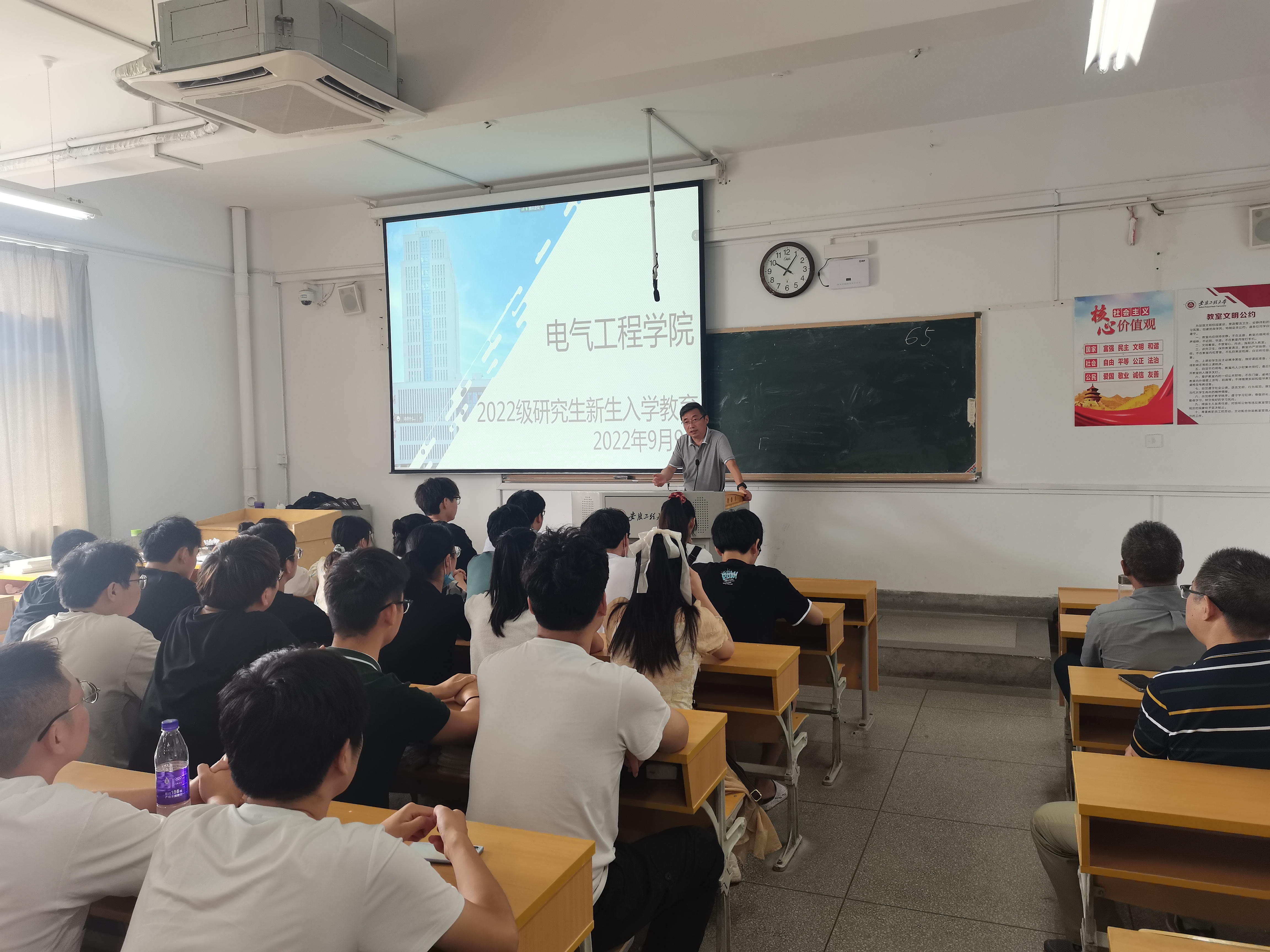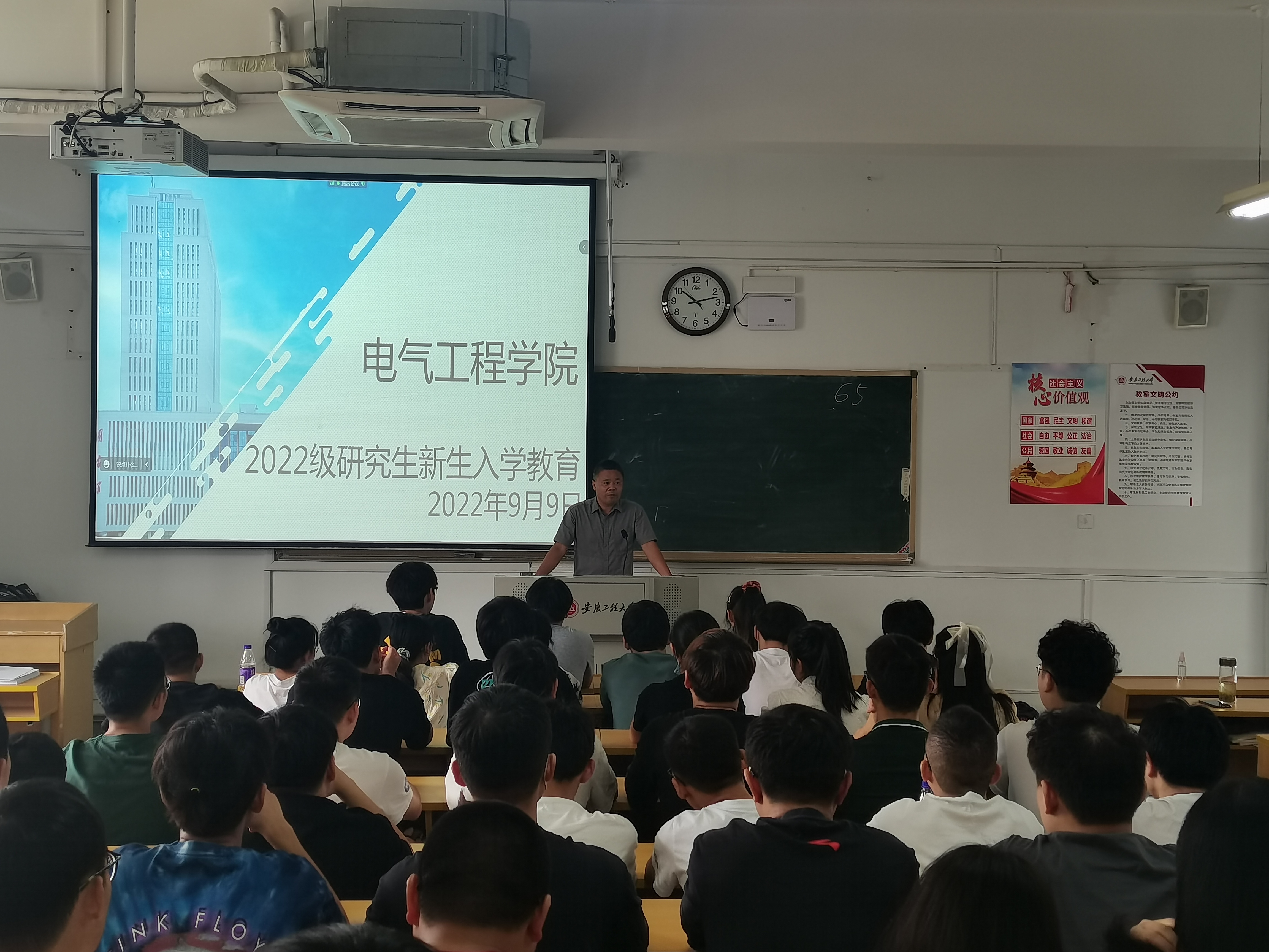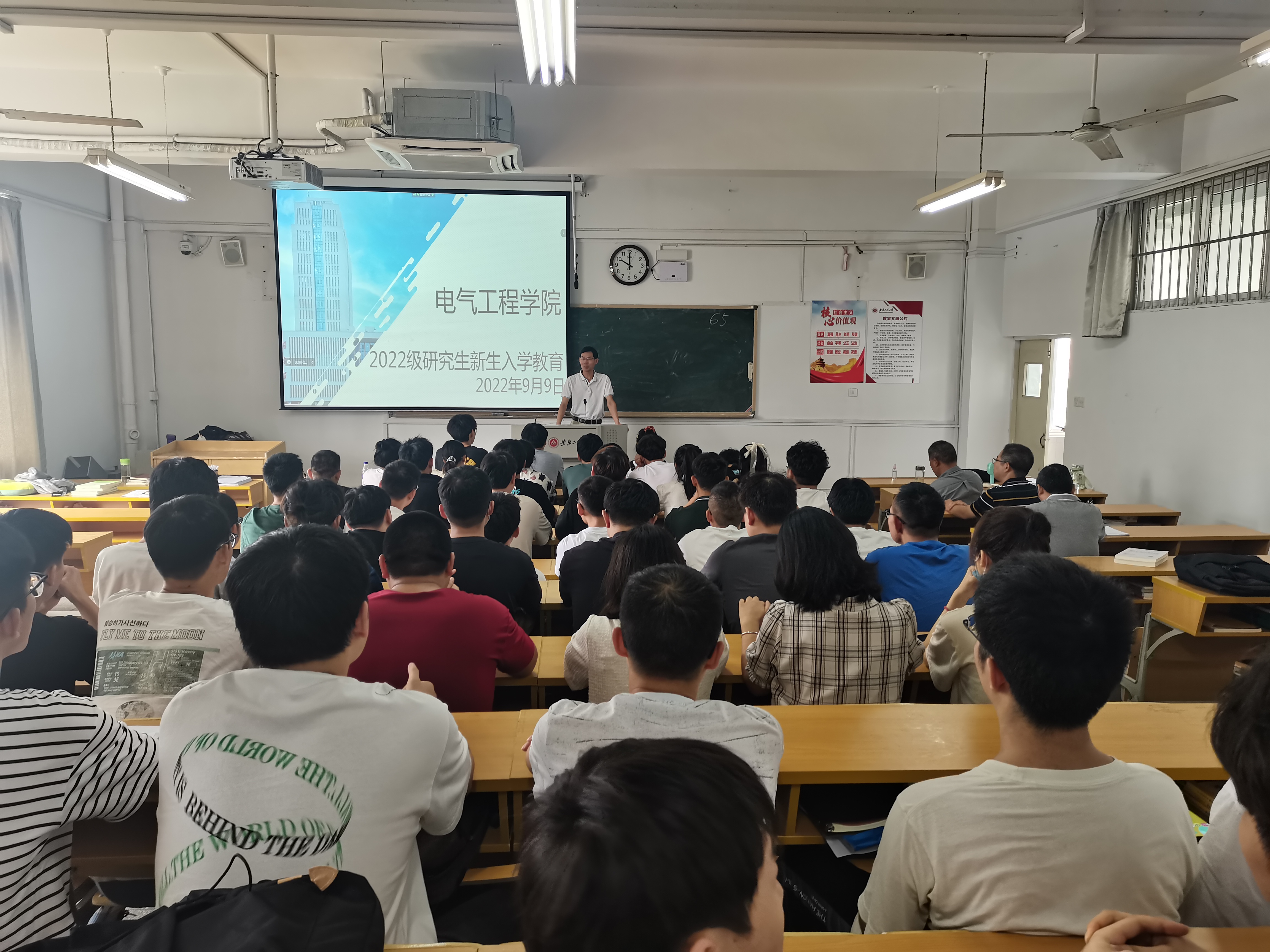 本网讯 9月9日上午,电气工程学院召开2022级硕士研究生新生入学教育大会。学院2022级研究生在主会场和分会场同步参会,学院副院长葛愿主持会议。