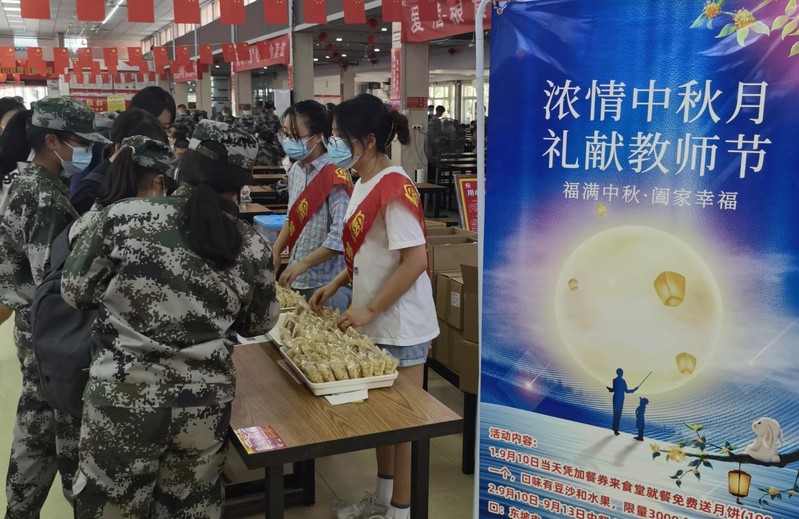 校徽月饼与加餐餐券让温暖加倍 “月到中秋分外明,每逢佳节倍思亲”,在这团圆的节日里,学校给全校2万多名学生每人发放了2块校徽月饼和1张价值15元的中秋加餐券。为让温暖能在中秋准时传递,刚开学后勤保障处就启动月饼采购程序;为让美食能在中秋节隆重推出,提前制定菜品供应方案,设定中秋节加餐券特供窗口,让学生在校也能感受到在家过节的氛围与温暖。