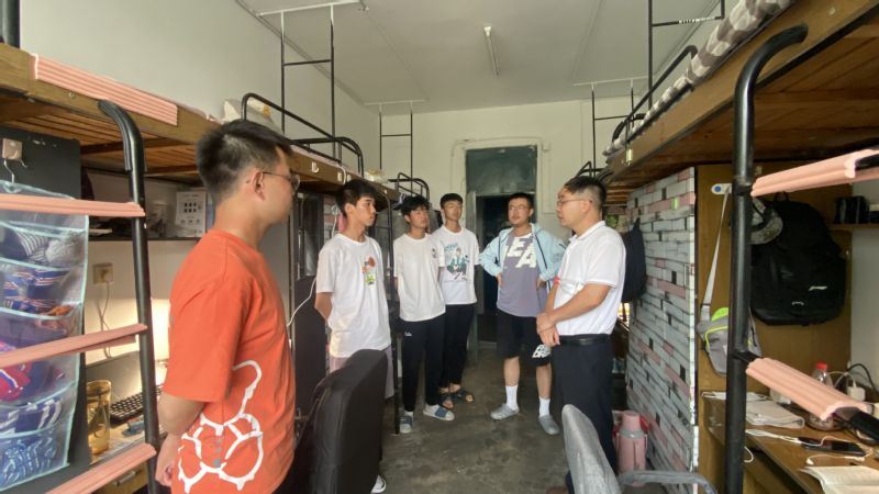 中秋节期间,学院领导周毅仁、吴小太、何志恒带领辅导员分4批走访学生寝室,共走访宿舍190余间,同学们对学院领导的到来表示“很暖心”。学院领导走进宿舍话家常,深入了解学生新学期的思想动态,宣传学校“三全六专”育人理念,介绍学院事业发展,开展宿舍检查,叮嘱同学们要注意身心健康,加强体育锻炼,营造安全、文明、和谐的宿舍环境。