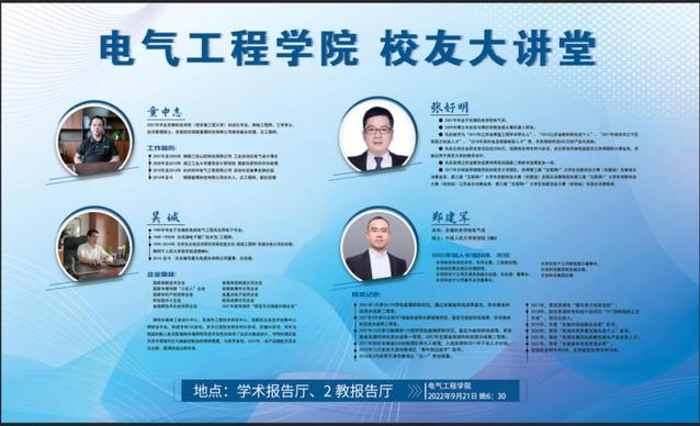 学做新时代电气人——“优秀校友为你讲奋斗”。01届自动化专业、铜陵富博科技总工程师童中志,01届电气系铜陵学院教授张好明,01届自动化专业、长信科技总裁郑建军和89届应用电子专业、华夏光电总经理吴诚4位学长热情真挚的分享了自己的创业经验、人生感悟,在人生规划与职业发展方向上为学弟学妹们提出宝贵的建议,引导学弟学妹们树立爱国爱校、科研报国、团结拼搏、健康生活的价值观念,传递了昂扬的斗志,传承了奋斗的精神,展示电气人的精神风貌,激励着新生继往开来,奋发向上。