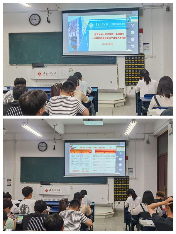 本网讯 为了帮助2022级新生迅速完成角色转变、更好地认知大学、有效进行自我管理,激发成长内驱力,为大学生涯、职业生涯、人生成长打好基础。9月22日晚上,计算机与信息学院组织全体2022级新生在晚自习教室通过腾讯会议开展大学生涯规划月系列活动之校友交流会。院党委副书记孙德茹、副院长刘涛、院党政办公室主任马晓琼、学工秘书吕寅、全体辅导员和全体2022级新生一起参加交流会,会议由吕寅主持。