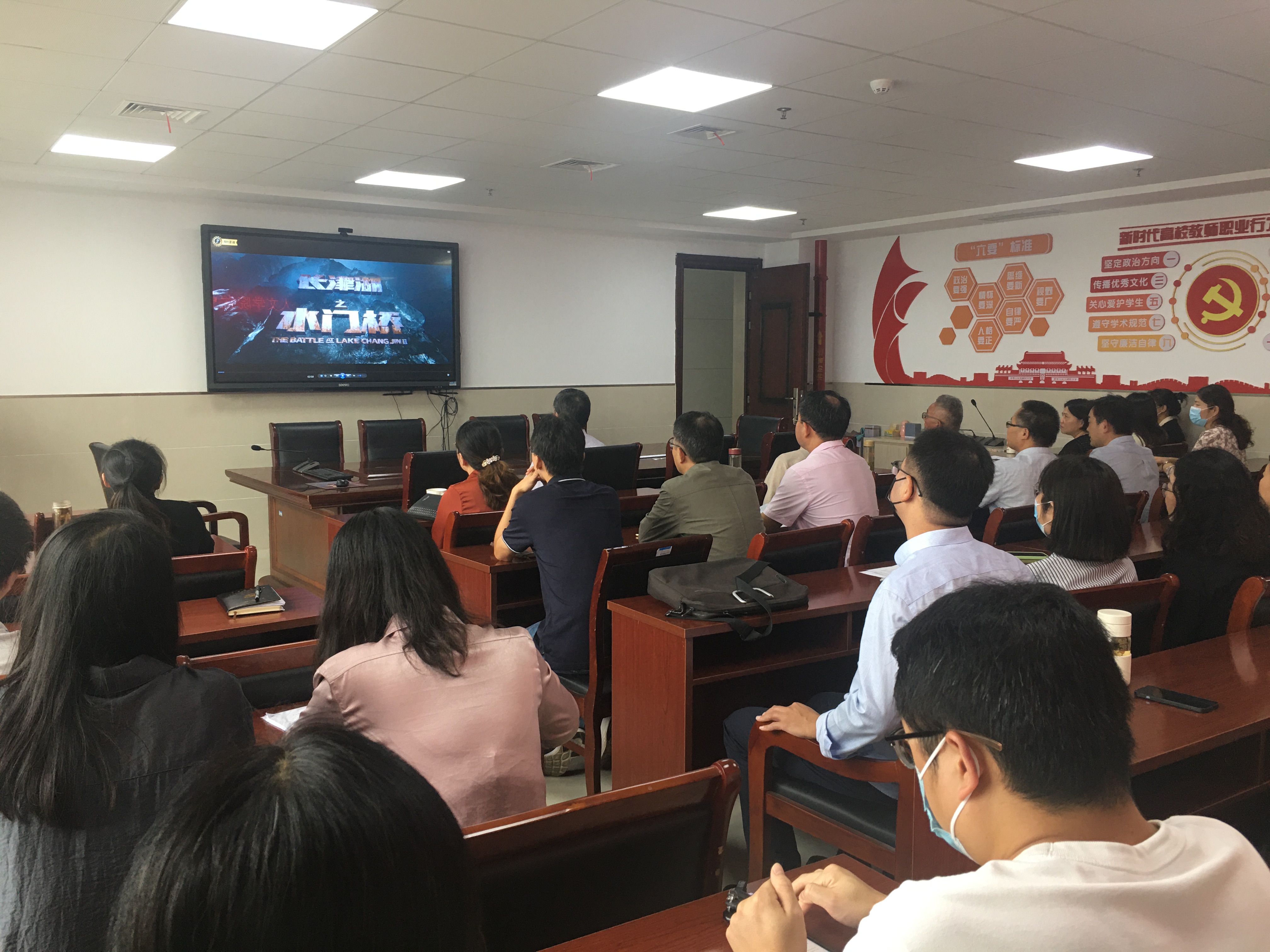 本网讯 为进一步落实党史学习教育常态化长效化,缅怀革命先烈,在烈士纪念日即将到来之际,人文学院党委于9月28日下午组织全体党员、教师集中开展党史学习教育《长津湖》主题观影活动。学院党政班子成员、全体党员、教师共同参加。
