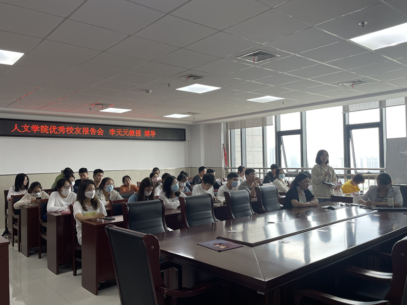 本网讯 为加强同学们自我规划意识,营造良好的学习氛围,推动学院学风建设,人文学院举办杰出校友报告会。报告会于9月27日上午举行,本次报告会以线上直播方式举行,线下会场设在学院1307会议室。院党委副书记金艾裙、院团委书记、社工专业教师、新生辅导员、2022级社会工作专业本科和研究生共同聆听报告会。报告会由金艾裙主持。