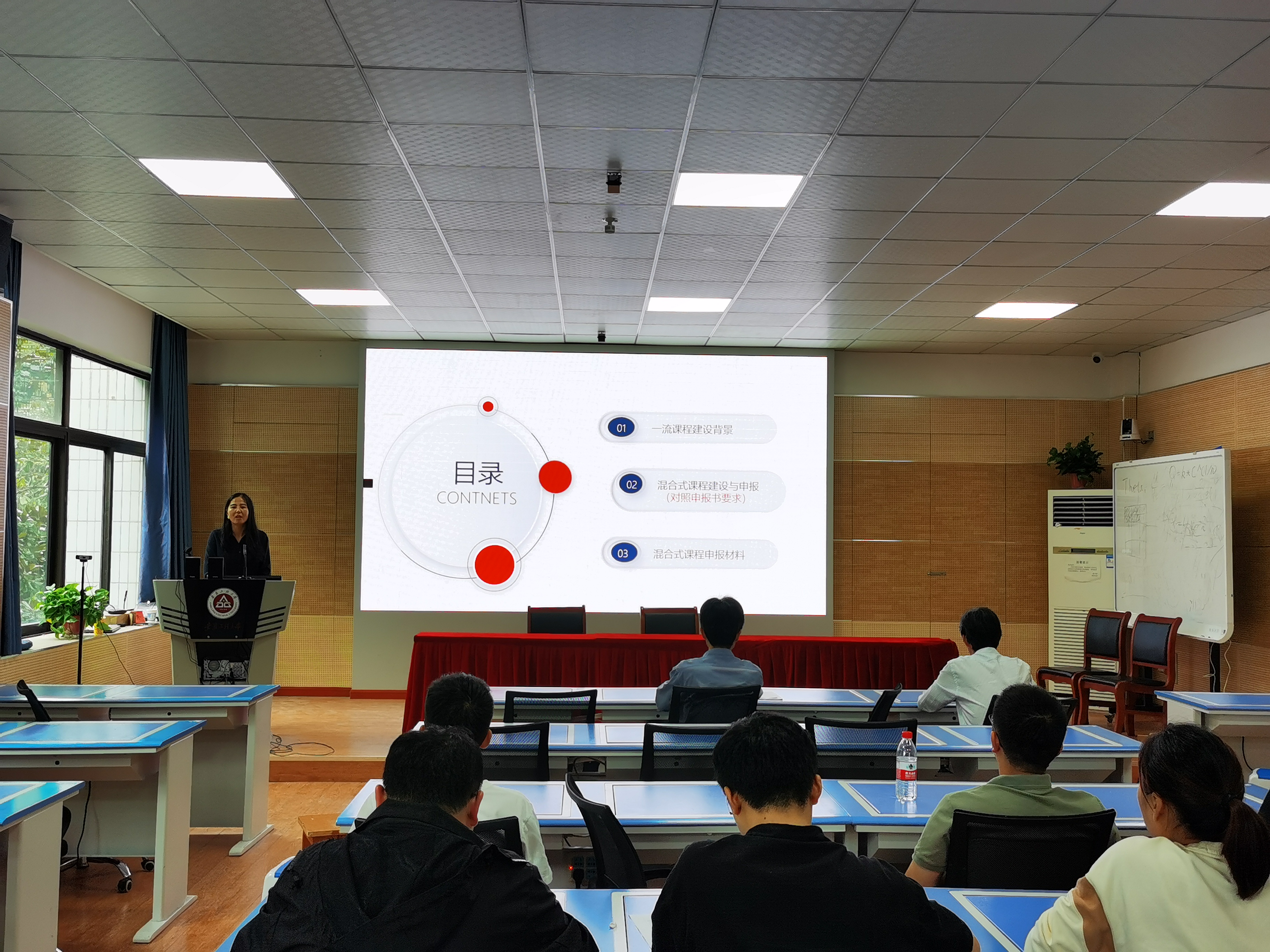 纵翠丽副教授以《国家级线上线下混合式一流课程建设与申报》为题,从一流课程建设背景、混合式课程建设与申报材料的准备、课程目标和课程特色的提炼、教学设计思路、教学方法、教学效果评价与比较等方面进行了详细的阐述,深入细致地解读了混合式课程建设与申报的要点,分享了自己在一流课程建设过程中如何达成高阶性、创新性、挑战度的实例。