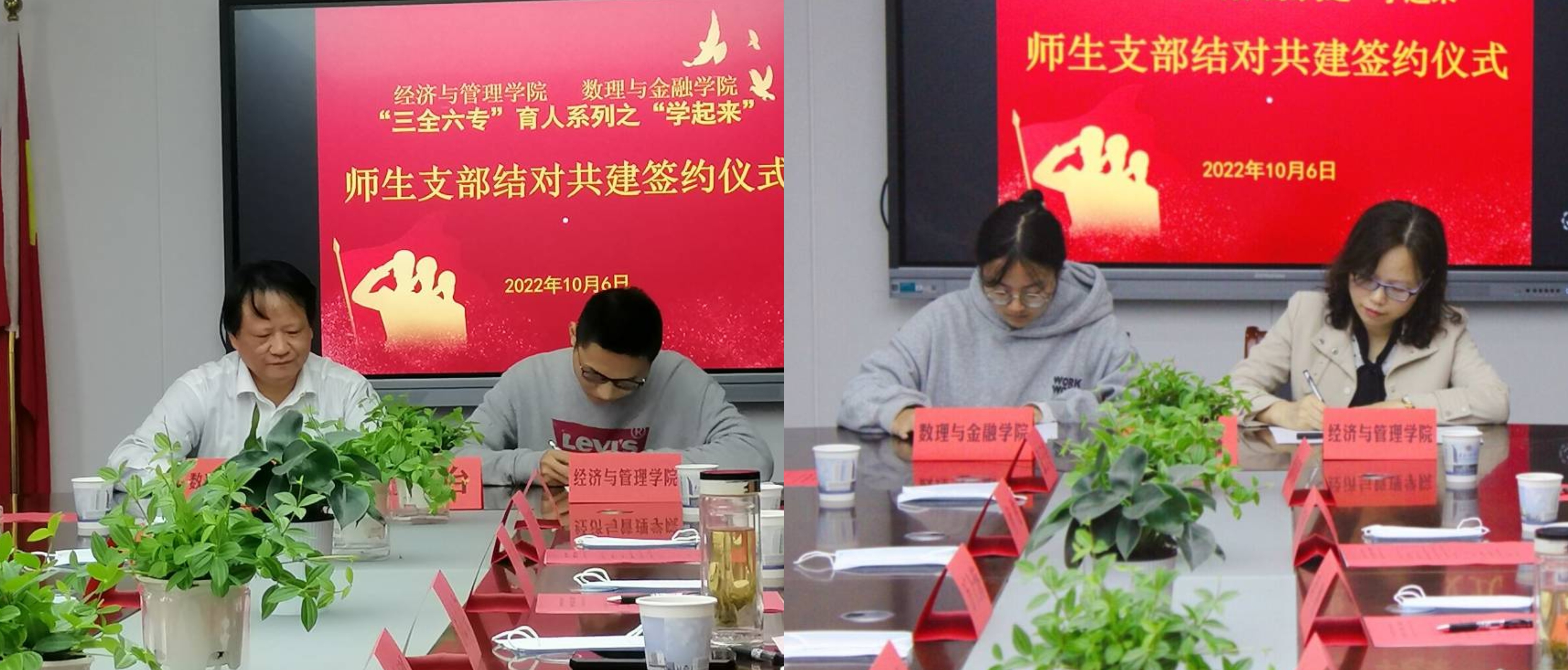 期间,数学教学中心教师党支部与国际经济与贸易专业学生党支部,经济贸易系教师党支部与金融工程系学生党支部签订了共建合作协议。