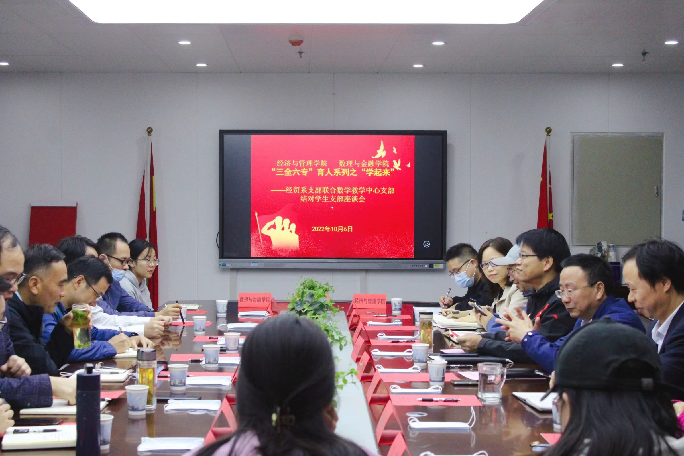 本网讯 为深入贯彻落实学校党委“三抓”工作要求和“三全六专”育人工作通知精神,提升党建工作质量和抓党建促发展的能力与水平。10月6日,经济与管理学院和数理与金融学院师生党支部共建合作协议签订在经济与管理学院会议室进行。数理与金融学院党政领导、经济与管理学院党政领导出席,数学教学中心教师党支部、经济贸易系教师党支部、金融工程系学生党支部、国际经济与贸易专业学生党支部成员及学生党员代表参加了协议签订活动。活动由经济与管理学院党委书记水心宝主持。
