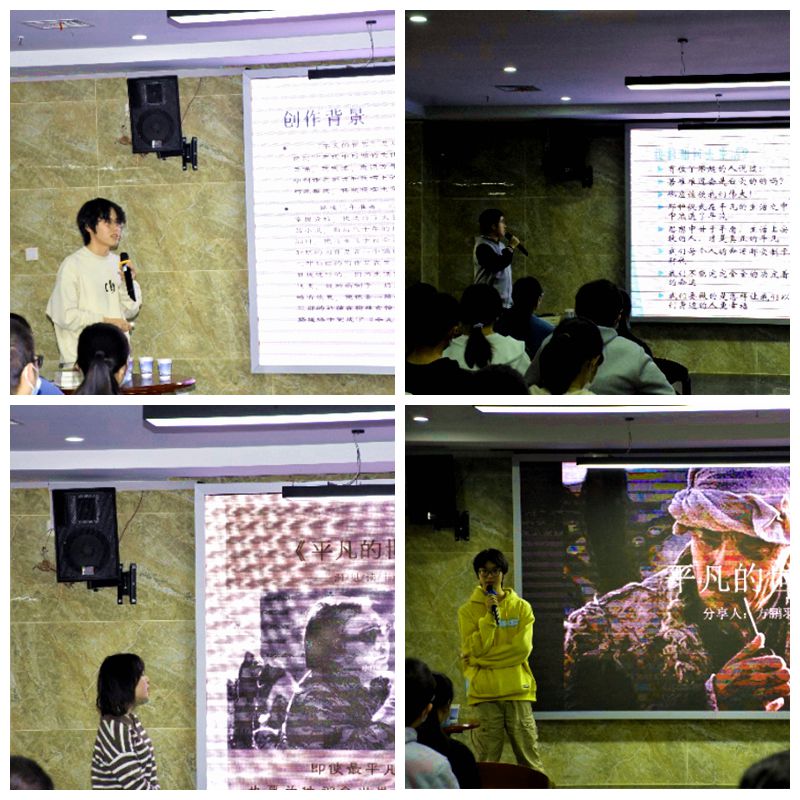 活动伊始,夏登峰教授以自身经历和身边实事为例,引出此次读书分享会主题——平凡,接着对《平凡的世界》一书从作者介绍、本书评价、人物介绍、故事梗概、作品赏析几个方面进行了介绍,同时分享了读书心得。他指出,平凡的人可以通过自己的努力成就非凡的人生,做到平凡但不平庸,同时指出面对困难我们要乐观自信,面对挫折我们要坚强勇敢,历经曲折苦难而愈战愈勇。最后,他激励同学们,珍惜现有的时间和资源,心怀理想、坚定信念、不怕困难,通过自己的努力提升自身高度,实现人生非凡的价值。