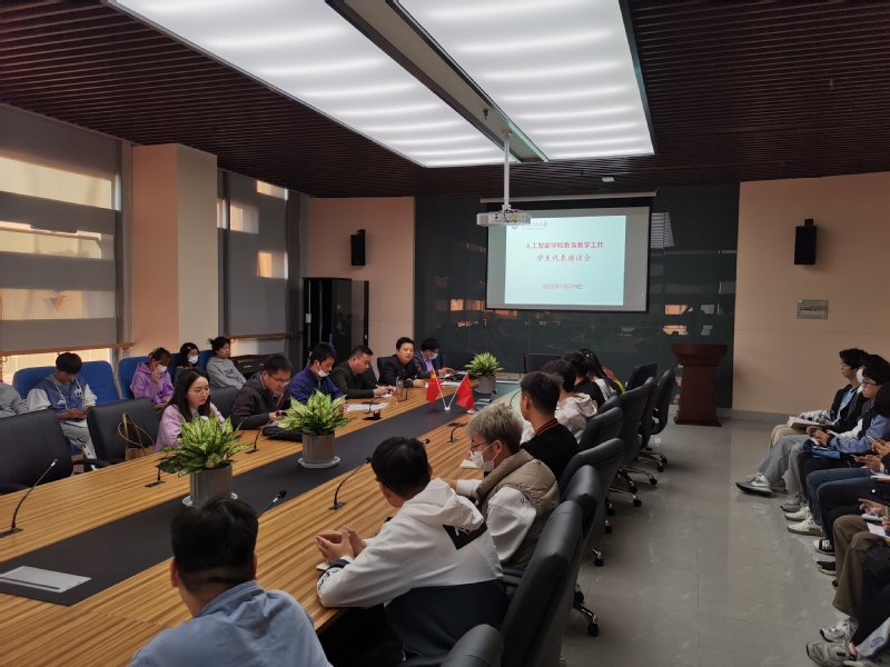 本网讯 为贯彻落实校党委“三抓”工作要求,全面掌握教学过程中存在的问题,深入了解专业培养方案执行、教学计划安排、教学质量水平等方面的情况,征集学院师生的意见和建议,10月19日,人工智能学院分别召开了专业教师座谈会和学生代表座谈会。学院党委书记任家钱、督导组成员参加了座谈,会议由副院长江本赤主持。
