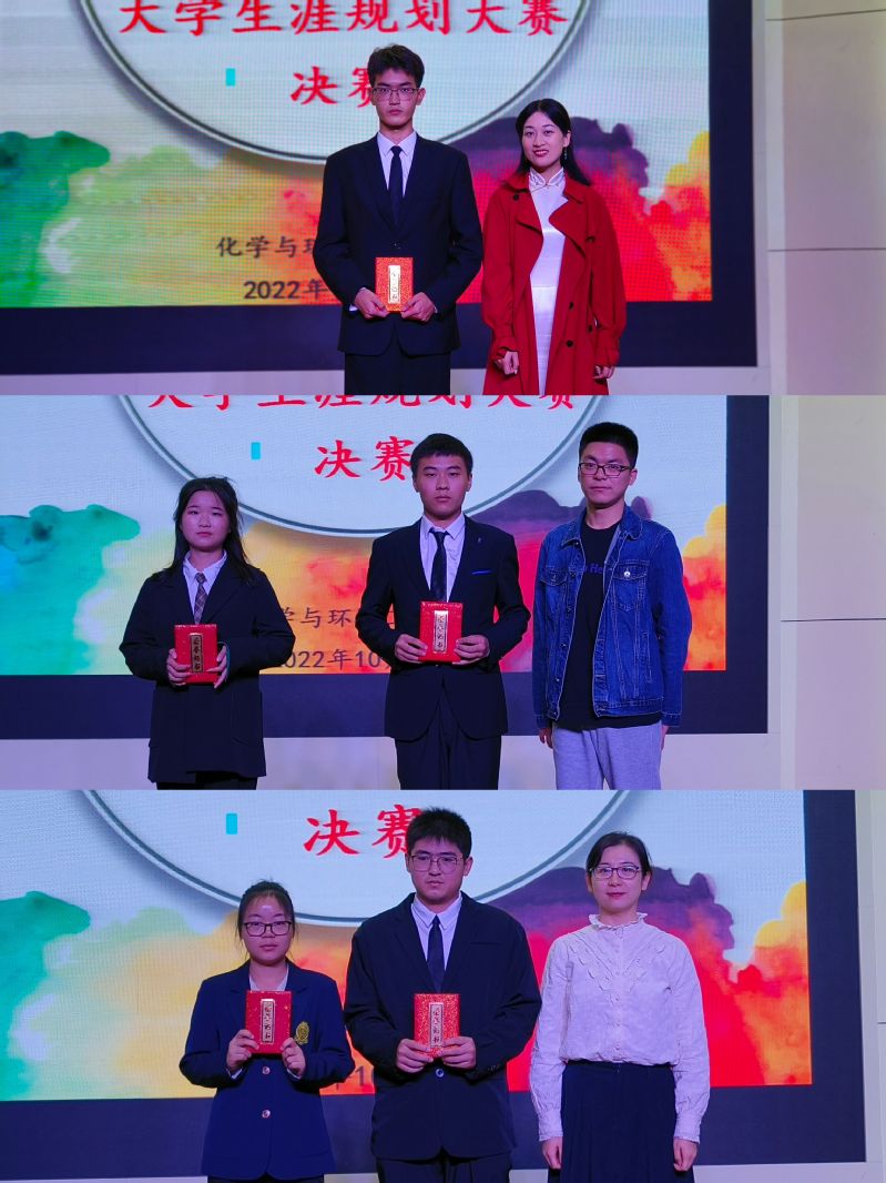 10位参赛人员通过抽签的方式先后上台作出精彩的演讲,他们通过个人VCR和PPT展示了他们的大学生涯规划,内容紧紧围绕主题,各有特色,比赛现场气氛热烈。选手们从自我认知、职业环境分析、职业目标确定、评估与调整几个方面描述了自己的职业规划,同学们都在认真聆听,仔细思考,自觉地将个人的“小我”融入到祖国建设发展的“大我”之中,充分展现了当代青年朝气蓬勃的精神风貌和锐意进取的形象。在各位选手激烈角逐下,高分子221班的张大伟获得一等奖,应化211李家诚、应化221陶宇月获得二等奖,环工221魏、应化221凌欣、高分子221李园园获得三等奖。