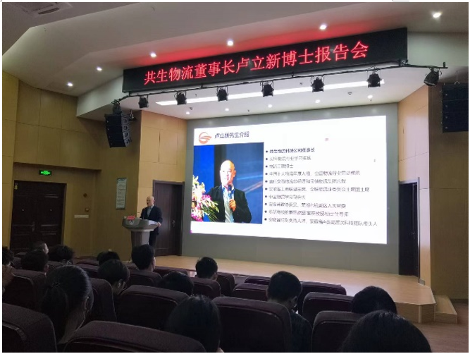 本网讯 10月26日,应科技处、研究生部和经济与管理学院的邀请,安徽共生物流科技有限公司董事长卢立新,在C座7楼报告厅为2020级、2021级、2022级物流管理专业近200名师生做学术报告。报告会由经济与管理学院院长龚本刚教授主持。