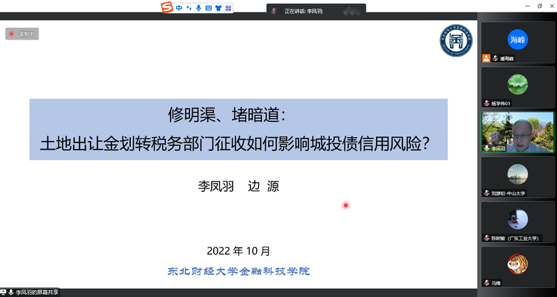 李凤羽教授做了题为《修明渠、堵暗道:土地出让金划转税务部门征收如何影响城投债信用风险?》的报告。聚焦2021年7月实施的土地出让金划转税务部门征收试点政策,分析中央政府对土地出让收入实施“修明渠、堵暗道”如何影响城投债信用风险。研究发现,土地出让金划转税务部门征收显著降低了试点地区城投债的信用利差,这一现象在以土地开发为主营业务、信用评级较低、盈利能力较差、土地资产注入规模较少、地区财政缺口较小的城投平台中表现更加明显。经济机制分析显示,土地出让金划转税务部门征收主要通过强化地方政府隐性担保和改善财政信息透明度的渠道对城投债信用风险产生影响。