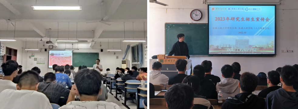本网讯 为做好2023年硕士研究生招生工作,进一步提升机械工程学院研究生招生专业的影响力,吸引更多优质生源,在学校研究生招生办公室的统一要求和部署下,机械工程学院于2022年6月份启动了针对省内外高校和相关大中型企业的研究生招生宣传工作,组建了招生宣传团,分组分批次、线上线下结合的方式,赴安庆师范大学、安徽科技学院、常州工学院、宿州学院、黄山学院、河南科技学院、安徽信息工程学院、南阳理工学院、巢湖学院、滁州学院、河南工学院、铜陵学院等省内外12所高校,以及安徽中鼎密封件股份有限公司、保隆(安徽)汽车配件有限公司、中车浦镇阿尔斯通运输系统有限公司等企业开展了研究生招生宣讲会。