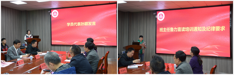 第一期劳动教育先锋示范班班长代表孙颖代表全体学员发言。班主任鲁力宣读培训班管理规定和纪律要求。