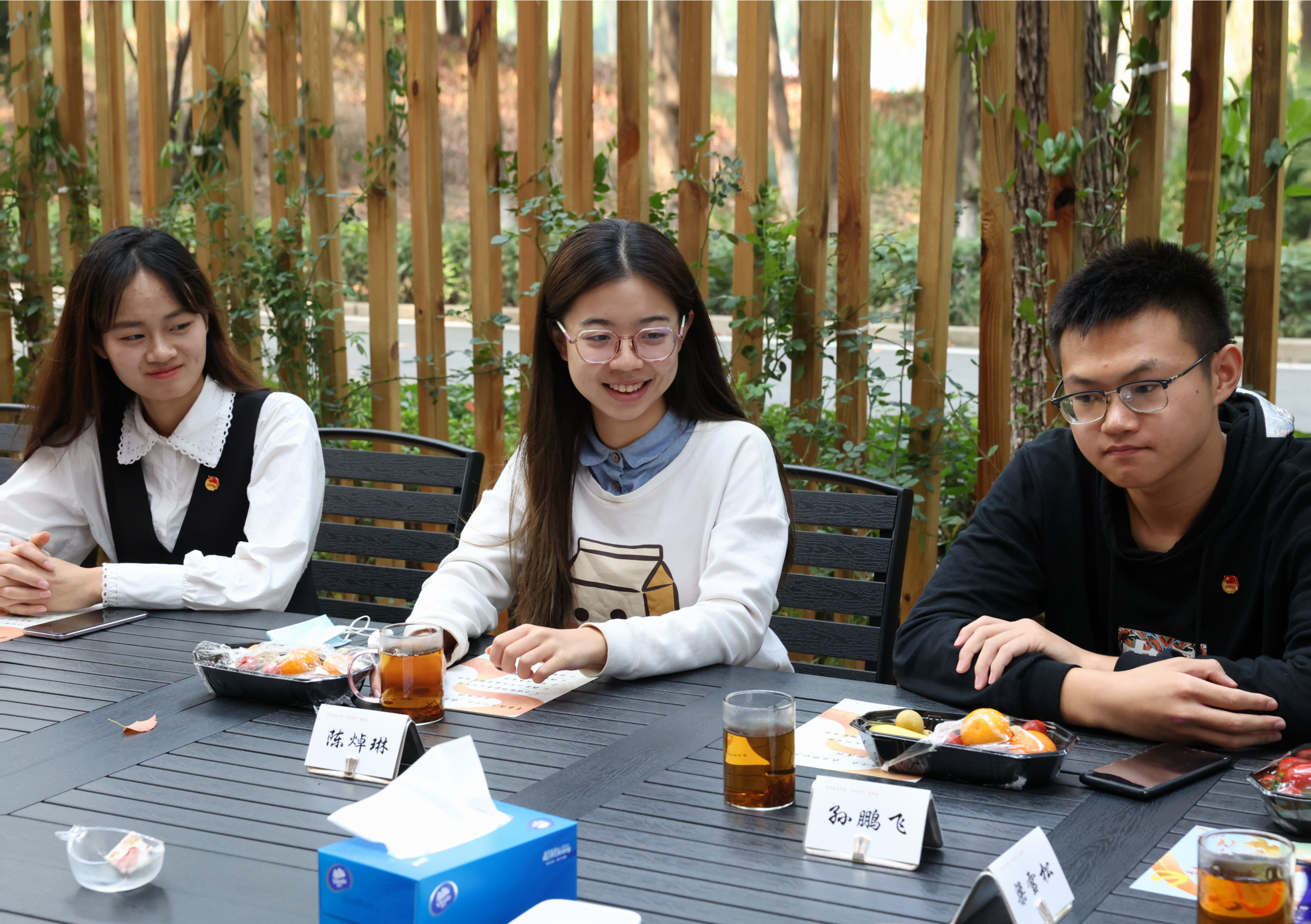 本网讯 为进一步推动党的二十大精神学习入脑入心,深入落实“以学生为中心”的教育理念。11月12日,纺织服装学院首期 “织无布言”畅聊会在学院芜湖浆染工作室户外花园举行。本期畅聊会以“青春遇上二十大 我与纺织共成长”为主题,学院党委副书记(主持工作)徐珍珍、学院副院长袁惠芬、学院党委副书记梁雪松、院团委副书记陈倩及辅导员童超梅、杨爽老师和来自学院各年级的11名学生代表参加。活动现场准备了美食和茶点,大家边吃边聊,气氛轻松愉悦。