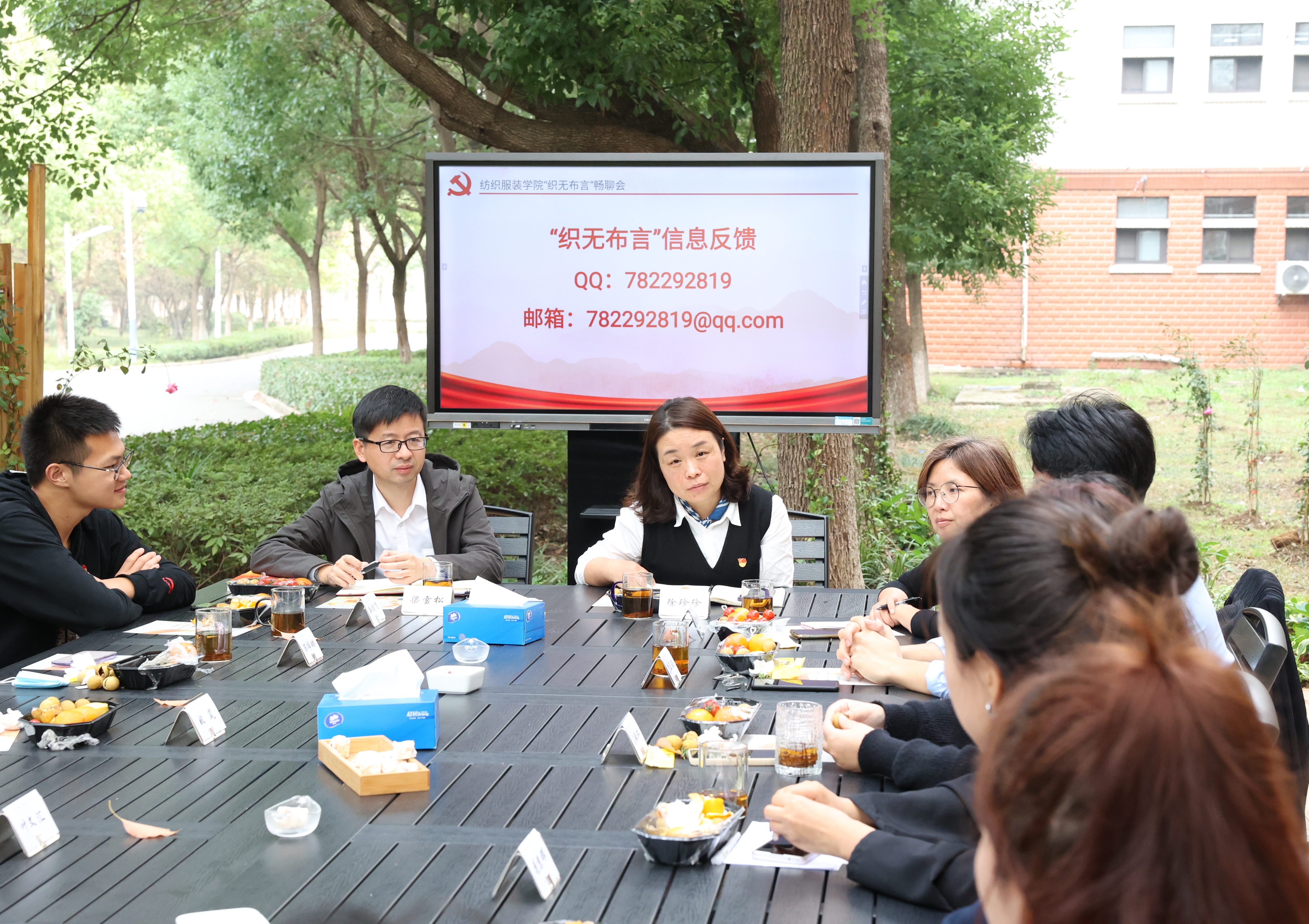 “织无布言”畅聊会是纺织服装学院推出的学院与学生交流的新形式和新平台,通过每期一主题邀请各年级学生代表畅所欲言,建立“面对面”的交流新机制。此外,学院还同步推出“键对键”线上信息反馈渠道,打造全时段的交流平台,第一时间了解、回应学生诉求,推进“三全六专”工作落地见效。