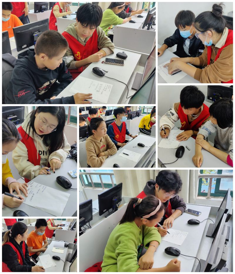 在芜湖市聋哑职业学校,“玫瑰花编程少年”志愿服务团队,帮助10-16岁聋哑青少年学习编程知识,锻炼逻辑思维能力。为了更好的与聋哑孩子进行交流,团队在开展活动前统一学习基础的手语知识,并准备了草稿纸和水笔以及一些小零食赠送给孩子们。团队成员在前期教学基础上,教会了孩子们如何制作一个简单的网页,用键盘筑起一个属于自己的世界。