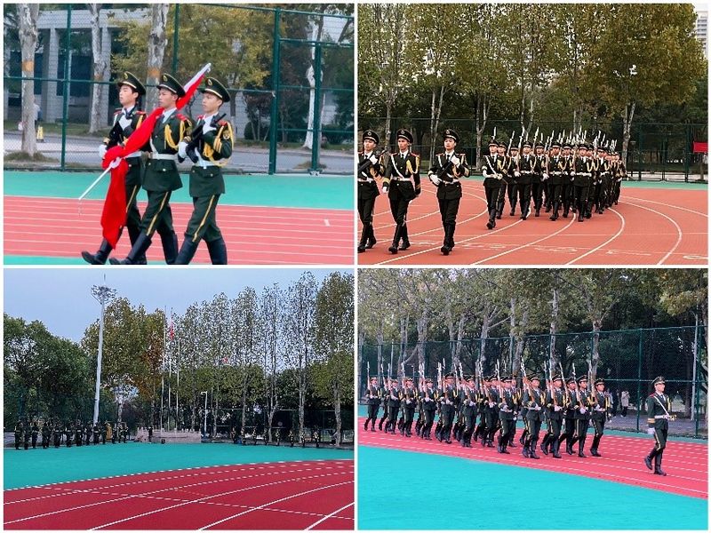清晨,全体师生安静地排队站立,注视着国旗护卫队高举五星红旗缓缓走向国旗台。护旗手们目光坚定,昂首阔步,伴随着神圣庄严的国歌响起,五星红旗冉冉升起,在高空迎风飘扬。在这个庄严肃穆的时刻,全体师生面向国旗行注目礼并齐声奏唱国歌。