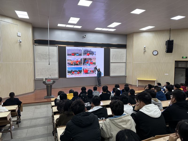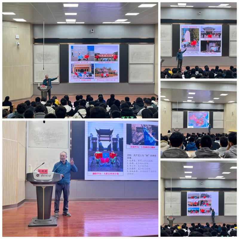 赵国庆展示了13年红色骑行的路线图,讲述了路途中了解到很多不为人熟知的红色故事和亲身感悟,通过红色骑行,感受先辈们炽热深沉的家国情怀,切实体会到了党的伟大,更加坚定理想信念。赵国庆从自信、坚强、快乐、健康等骑行收获和领悟伟大的红色精神与同学们一起分享感受。一段段波澜壮阔、跌宕起伏的红色记忆,使同学深受鼓舞,跟随红色骑行的足迹,进一步加深了对党史的认识,进一步增强了荣誉感和自豪感,深刻感悟红色基因的历史传承。