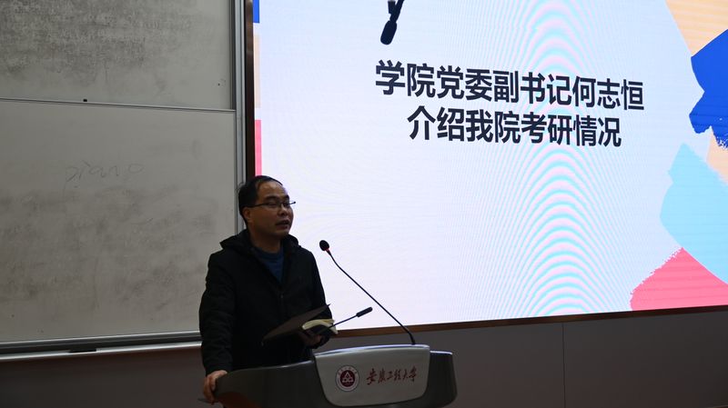 学院党委副书记何志恒通报了学院2023届学生考研报考情况。今年学院学生考研报考率创新高,他鼓励同学们坚定理想信念,矢志艰苦奋斗,咬定青山不放松,对各门科目查漏补缺,始终保持坚持到底、沉着冷静的心态,以最佳的精神状态迎接硕士研究生招生考试。