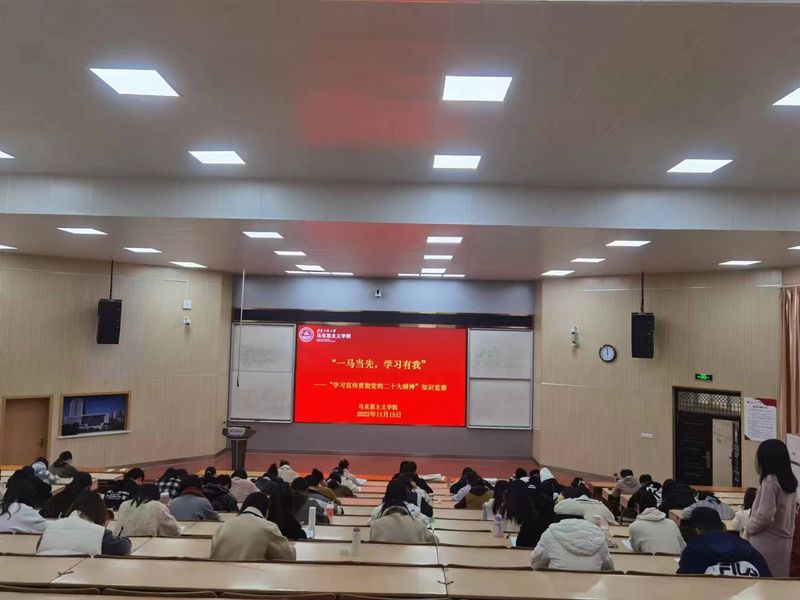 本次知识竞赛旨在深入学习贯彻党的二十大精神,进一步落实“三抓”工作和“三全六专”育人工作。比赛分初赛和决赛两轮。11月15日,学院全体研究生采取线下笔试的方式完成初赛。初赛成绩前18名组成6支队参加决赛。决赛分必答和抢答环节,同学们积极抢答,配合默契,竞争激烈,现场气氛十分活跃。整个比赛过程同学们积极参与,答题准确率很高,体现出马克思主义学院研究生学习党的二十大精神的高度自觉和对党的二十大精神知识的把握程度。