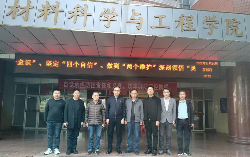 本网讯 11月24日,广德市人民政府副市长朱迅强、科技局局长张志坤、市政府办党组成员万能开一行来校,与材料科学与工程学院洽谈技术转移中心共建事宜,参观学院先进陶瓷中心、增材制造研究院。双方在B座216会议室举行洽谈会,材料科学与工程学院院长左如忠主持会议,科技处副处长王刚、副院长朱协彬以及各系负责人、骨干教师参加会议。