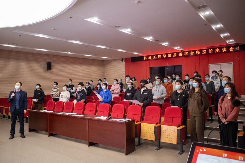 本网讯 为激发寝室长在学生自主管理中的作用,落实学校“三全六专”育人工作,加快构建“安全卫生、学风优良、和谐文明”的宿舍新态,彰显“星级宿舍”的榜样示范效应,11月27日,机械工程学院在国际工程师学院小报告厅组织召开了“星级宿舍”寝室长座谈会。机械工程学院党委副书记秦广虎、部分辅导员以及全体“星级宿舍”寝室长参会。会议由辅导员何琳主持。