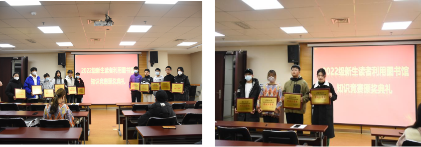 本网讯 为了提高图书馆的服务质量和服务水平,进一步了解和满足学生读者对图书馆的服务需求。图书馆于11月30日在图书馆813会议室举办了2022级新生读者利用图书馆知识竞赛颁奖典礼,图书馆信息参考部主任郭红转、资源建设部主任张彤彤以及来自校十五个学院的15位学生代表参加了本次颁奖典礼。