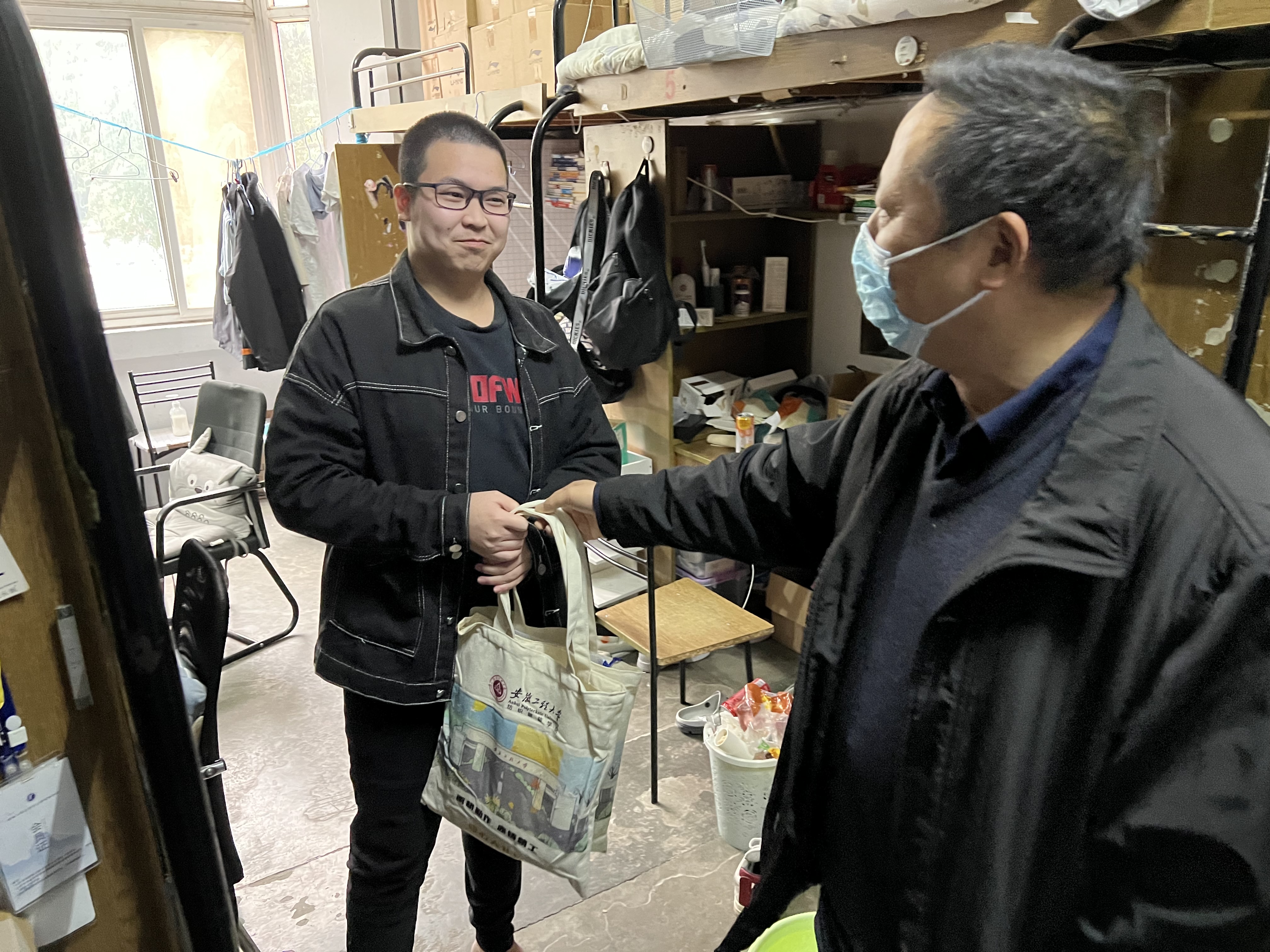 本网讯 近日,纺织服装学院赴学生宿舍开展2023届毕业生慰问活动。学院党委副书记(主持工作)徐珍珍、学院院长李长龙、学院党委副书记梁雪松、团委负责人和毕业班辅导员参加活动。