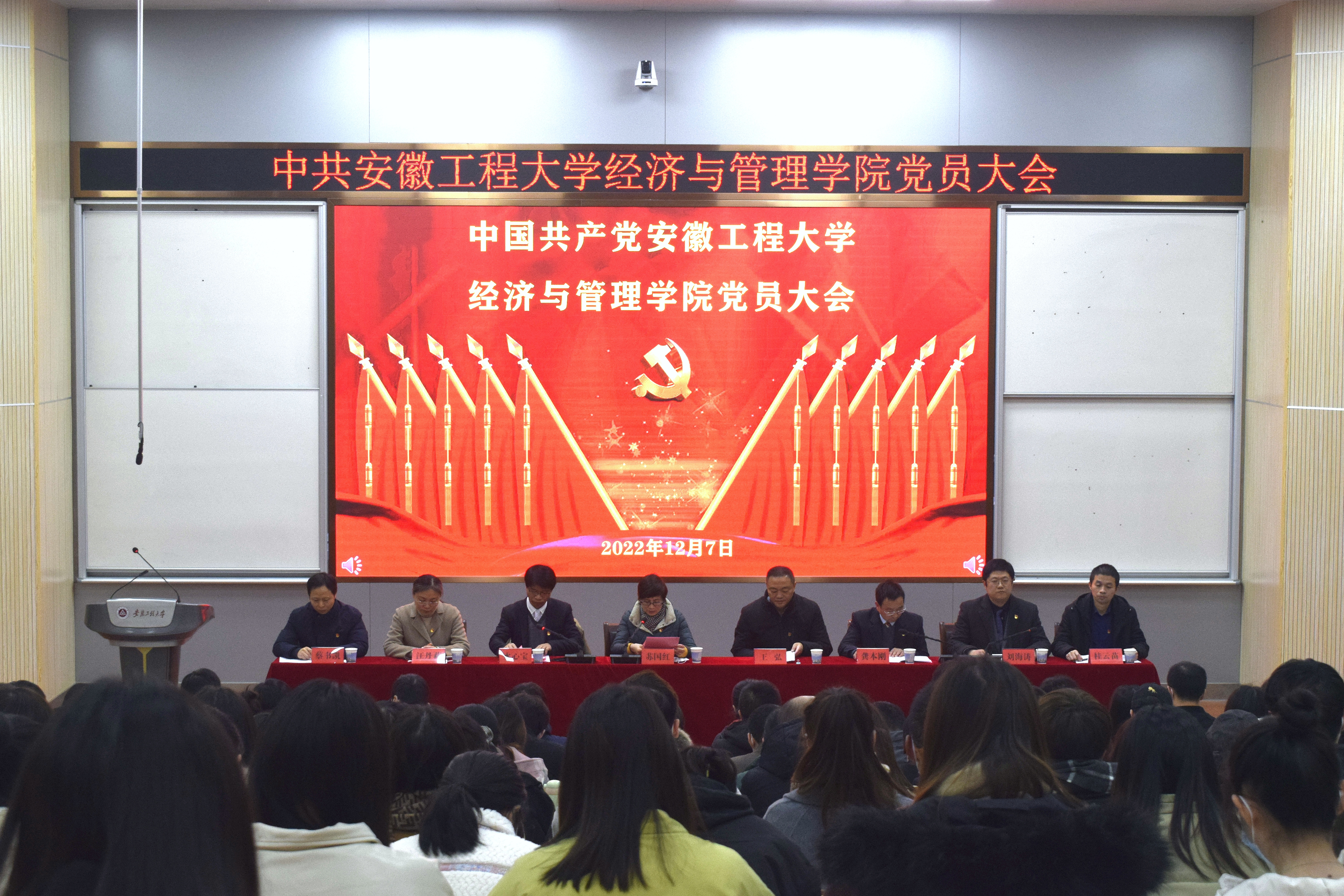 本网讯 12月7日,中国共产党安徽工程大学经济与管理院党员大会在2J报告厅隆重召开,校党委副书记苏国红,校党委常委、组织部部长王弘出席,校纪委办公室副主任、综合管理室主任汪丹莉全程监督指导,学院全体师生党员参加大会。