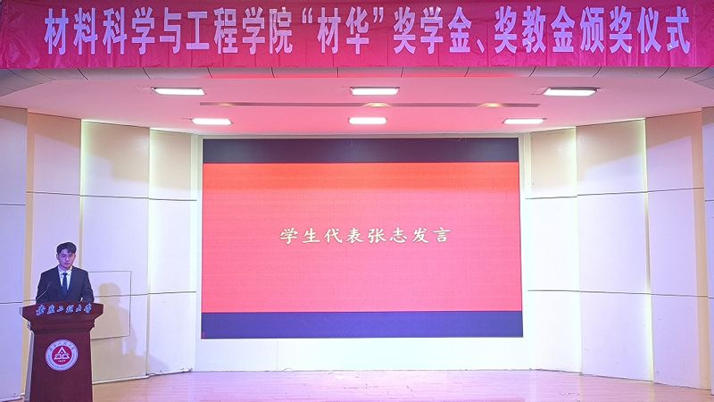院长左如忠致辞,对获得“材华”奖教金的老师、奖学金的同学表示祝贺。鼓励他们再接再厉、戒骄戒躁,脚踏实地、埋头苦干,在攀登知识高峰中追求卓越,在为祖国和人民奋斗中书写青春的灿烂篇章。