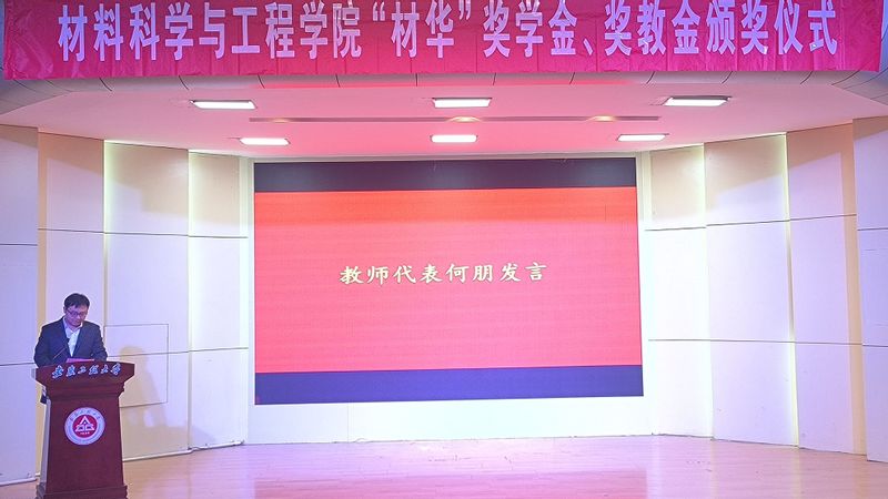 本网讯 12月7日,材料科学与工程学院“材华”奖学金、奖教金颁奖仪式在学术报告厅举行。社会合作处处长刘金斌应邀出席,学院党政领导、全体教师、本科生代表、研究生代表参加颁奖仪式。颁奖仪式由院党委副书记方玖胜主持。