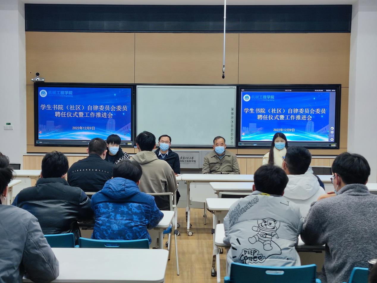 本网讯 为加快构建和谐书院(社区),充分发挥大学生自治管理效能,推进学生社区终端落实“三全六专”工作,12月9日,机械工程学院举行了学生书院(社区)自律委员会委员聘任仪式暨工作推进会。机械工程学院党委书记伊长文、党委副书记秦广虎、辅导员代表以及全体自律委员会成员参会。会议由秦广虎主持。