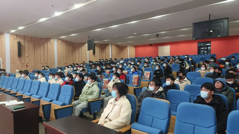 本网讯 为缓解考研学生压力,为考研学子加油鼓劲,12月12日,人工智能学院在新校区大报告厅开展“‘研’途不负阳光万里”送温暖活动。学院党委书记任家钱、副书记李文江、毕业班辅导员苑雨露、宋帅与160余名考研学生共同参与。活动由李文江主持。
