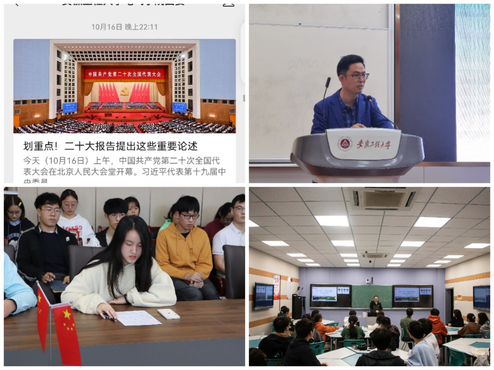 依托学院团委学生会,团学骨干带头学习党的二十大精神,结合学院中心工作,在活动现场、班级团支部等基层一线,开展党的二十大精神宣讲。发挥线上媒体宣传优势,通过学院团委微信公众号,推送党的二十大最新资讯。用好线下宣传渠道,学院办公楼电子屏滚动播放党的二十大内容,邀请校团委领导、青年讲师团等,为同学们宣讲党的二十大精神。发挥党团服务中心阵地作用,组织学生党员、团学骨干开展学习研讨,在全院上下营造出学习宣传贯彻党的二十大精神浓厚氛围。