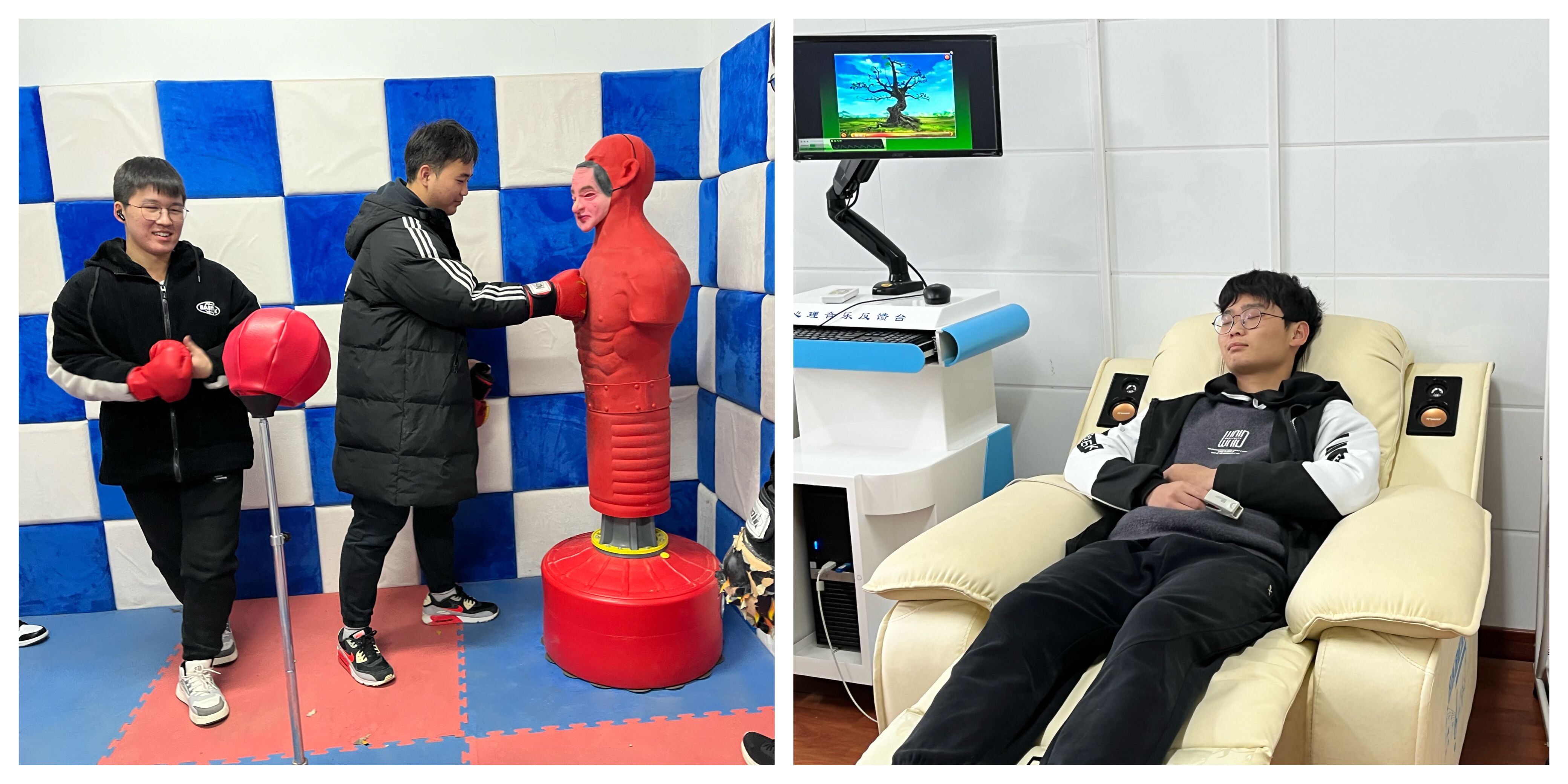 培训期间,为帮助2022级心理委员更好地了解心理健康教育中心,组织226名心理委员分批次、分小组参观体验心理健康教育中心各项功能室,在宣泄室内通过呐喊排解不良情绪、在放松室内通过音乐放松身心压力……同学纷纷表示,这是一场前所未有的心灵体验。