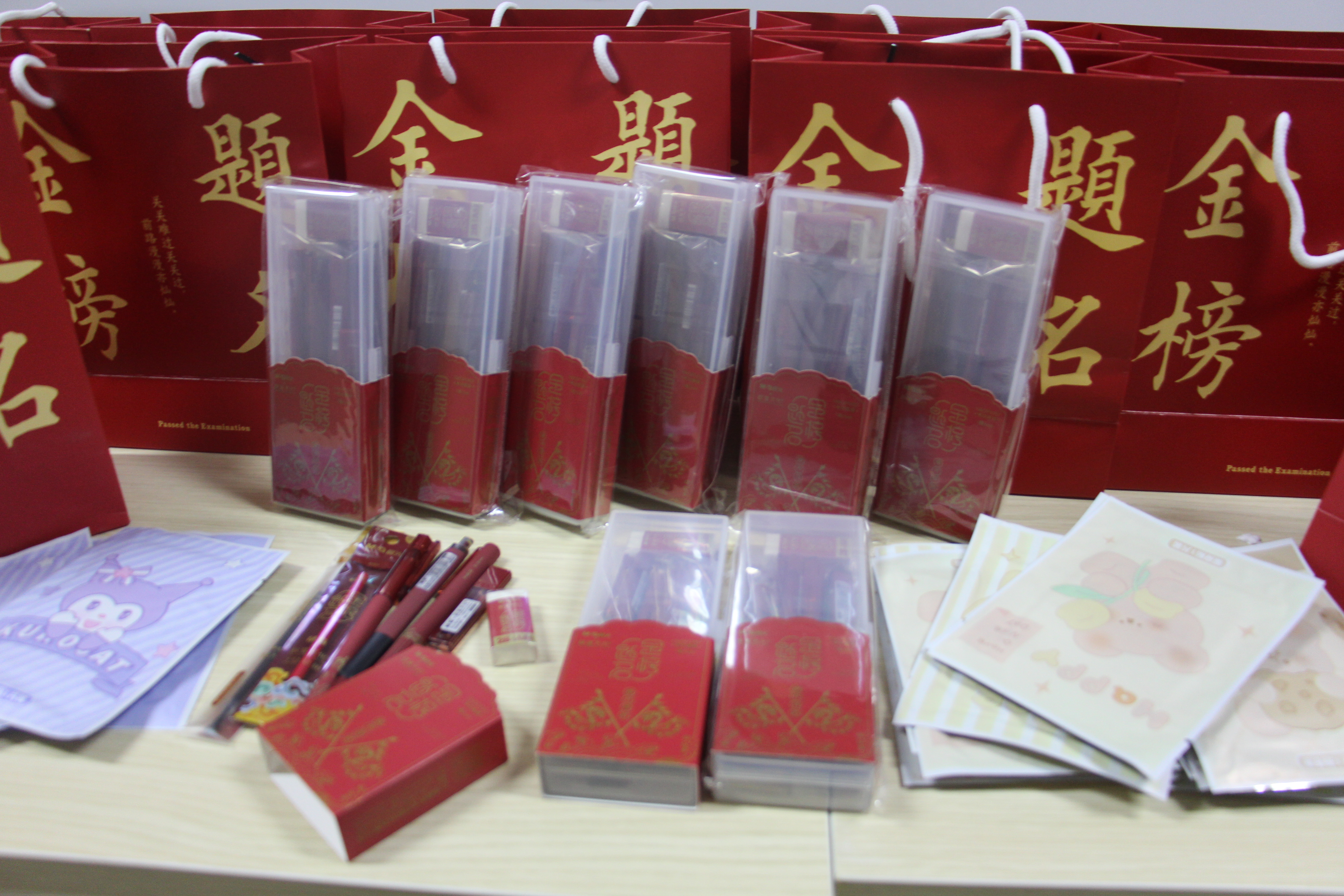 精心准备,加油赋能。暖心礼包中的每一件物品都承载着学院诚挚的关怀和祝福。考试必备的文具象征着对学子的支持,暖宝贴为冬日备考的学子驱除严寒,礼品袋和文具上印有的金榜题名、逢考必过等字样为学生送上满满祝福。同学们十分欣喜,收到礼包纷纷表示“感谢学院老师们送来的祝福,一定会努力拼搏,一战成硕”。